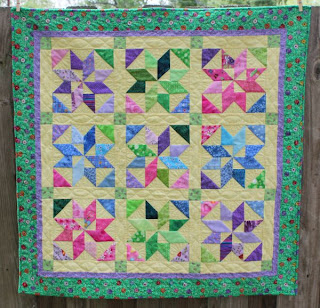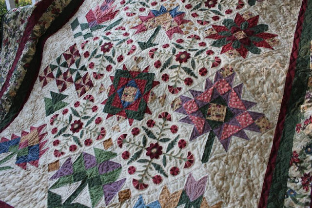 Last I got my Diamond Star quilt quilted. It still needs a binding put on. When I get that done I will show the whole thing. It would be on already, but I can't find the blue fabric I want for the binding. I must have used it in another project. I suppose that is what happens when quilt tops sit 10 years before you quilt them. Now I have to go shopping for something that matches, but I am ok with that. :)